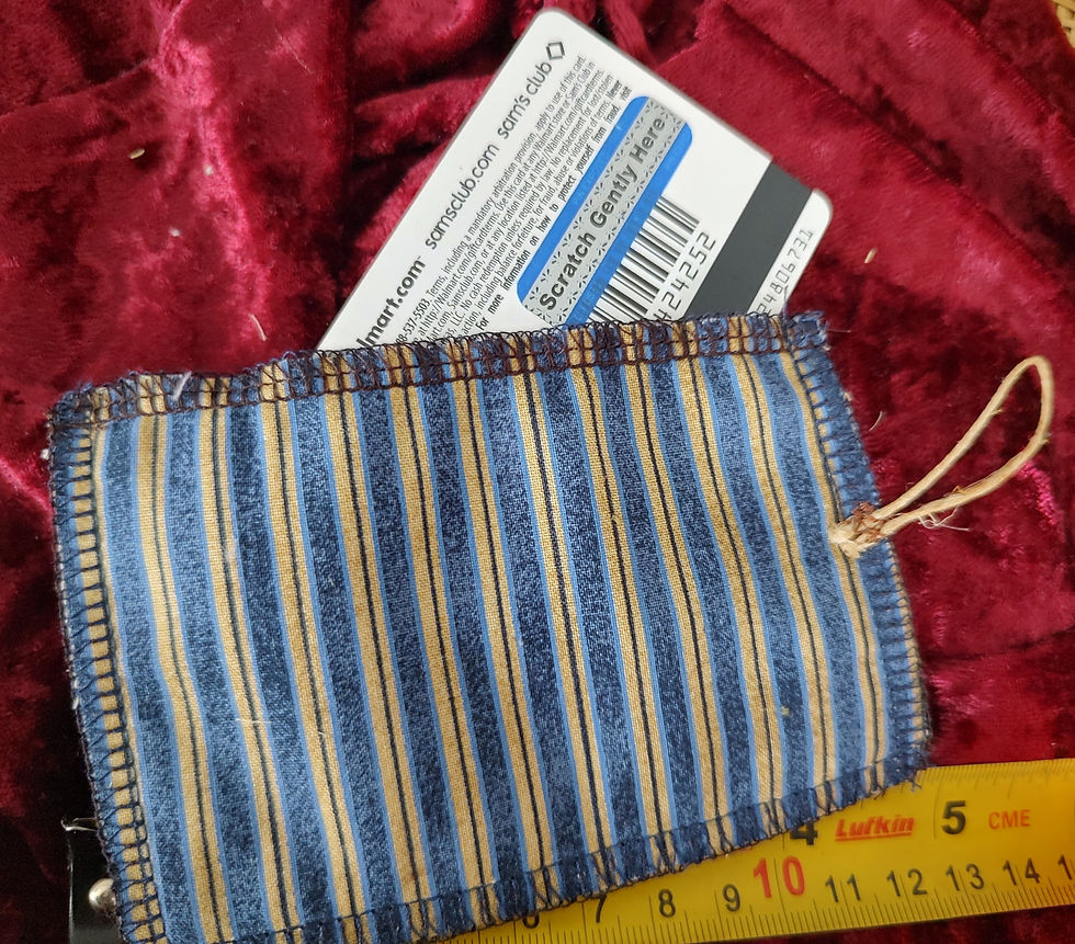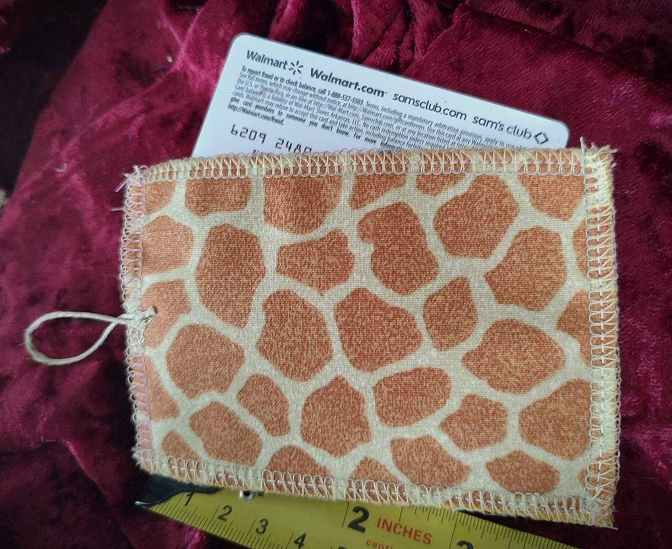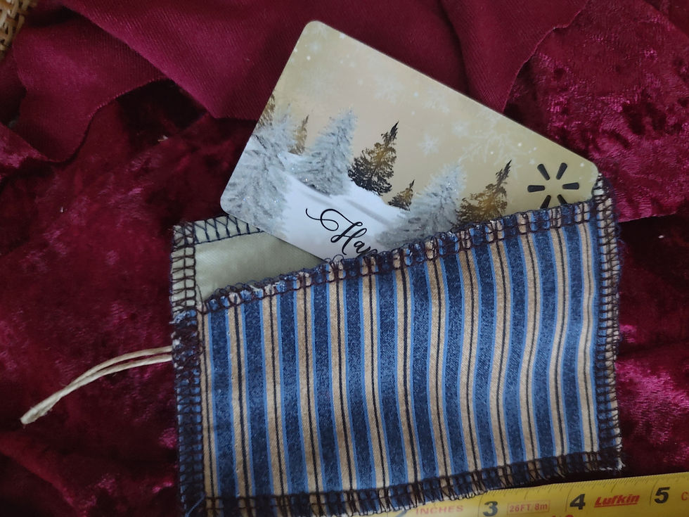 Gift Card Holder can be given as part of the gift. Lined, durable, reusable, stylish, personalized styles. Loop is for hanging on tree or attaching to the gift. Soft fabrics used so that it can hold the gift card or cash hidden in your sock or in a pocket or even tucked into your bra for privately holding your money while shopping and busy hands. Hide cash in a book or glove compartment in these cleverly designed sock wallets. Create themes for each family member, plaid for Dad, flowers for Mom, etc. Only $5 each and a pretty clever, new tradition for any gift occasion. 4"x3".