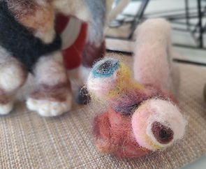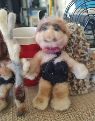 Colby was my first attempt at felting. Geez. This was back in 2017ish. I love detail. He's adorable but more 'general' than my preferences. Hands, for instance, feet. But. What's nice about felting is that changes are actually easily made. I'm working on so many things. This guy, being a character is what would be termed these days as an "OC," (original character) and a ONE OFF, like most other things I do they aren't done again. I also love a 'counter part' and 'side kicks.'